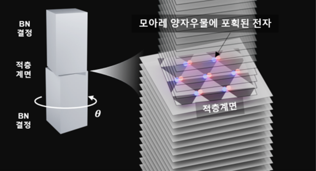 연구팀은 반데르발스 힘으로 적층된 반도체 소재인 질화붕소의 층을 비틀어 쌓을 때, 전자를 강하게 가둘 수 있는 양자우물 구조가 생성되는 것을 발견했다.