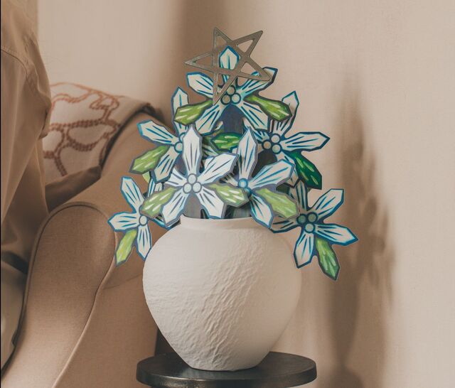 나난 작가의 크리스마스트리를 형상화한 작품.컴패션 제공나난 작가는 꽃을 단순한 소재가 아닌 창조 세계에 대한 묵상에서 비롯된 결실이라고 설명했다.
