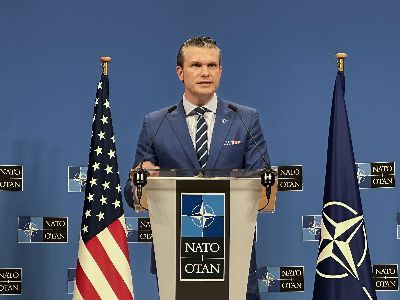 전쟁 기간 6~8주도 가능 시사 지상군 투입 실행할수도 필요없을수도피트 헤그세스 미국 국방장관이 지난해 벨기에 브뤼셀 나토 본부에서 기자회견을 하고 있다.